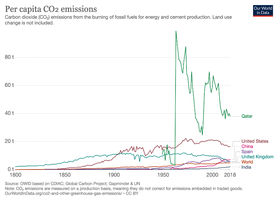 A one-way flight from San Francisco to Paris can produce just over 1.25 metric tons of carbon emissions per passenger. That is over a quarter of the amount of carbon that the average person worldwide produces per year – just from one round trip [sic – is it one-way or roundtrip?] flight.