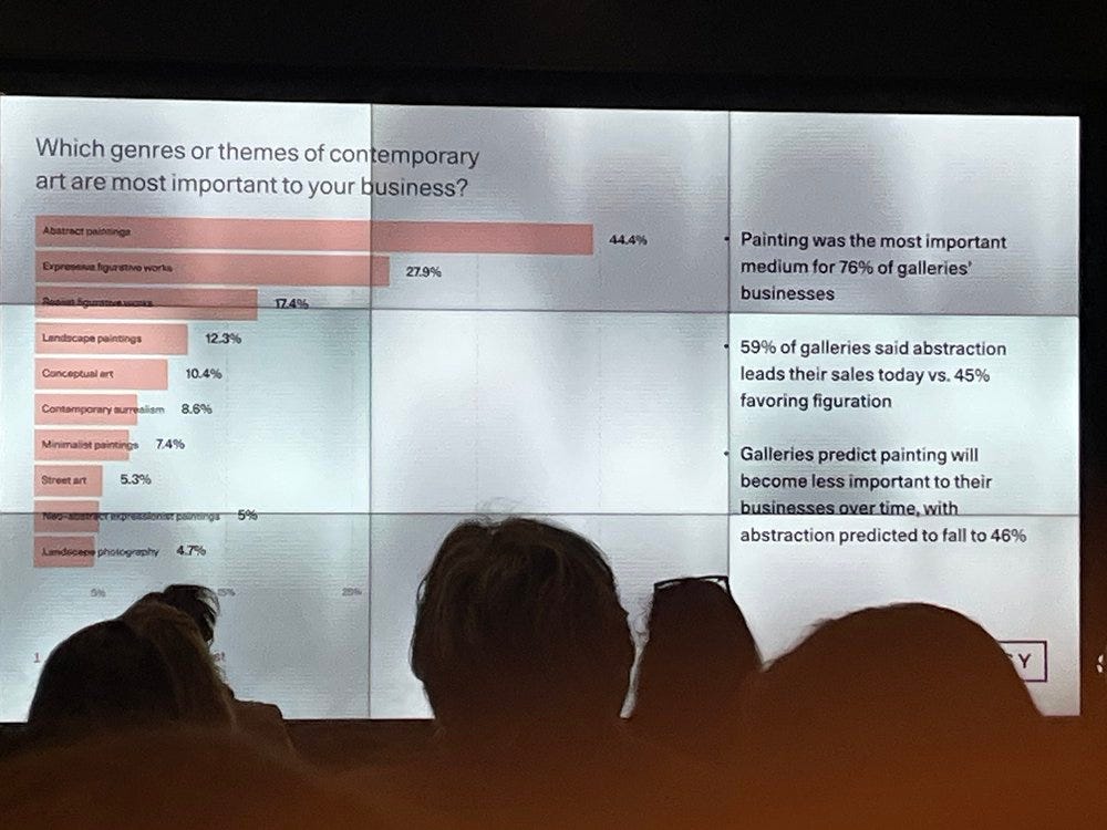 I have never attended the pre-pandemic iterations and thus cannot compare this one to the past. I first observed that they did not define art in a practical sense. It assumed we know. Semantic criticism is trivial but becomes important when using data to assess the state of the market. Do antiquities sold by dealers and auctions fall into this category?